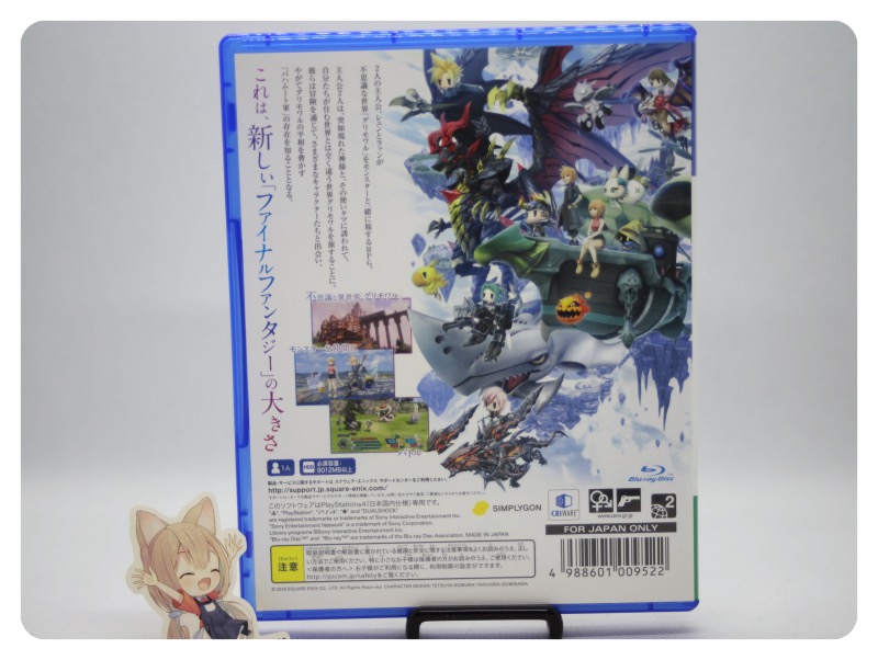 ゲーム概要: 『ワールド オブ ファイナルファンタジー』は、「ファイナルファンタジー」シリーズのキャラクターやモンスターが登場するRPGです。プレイヤーは、双子の主人公レェンとラァンを操作し、モンスター「ミラージュ」を仲間にして、冒険を進めます。モンスターの捕獲や育成、バトル時の「スタックシステム」を駆使した戦略的なバトルが特徴です。FFシリーズのファン向けの作品で、シリーズお馴染みのキャラクターたちも多数登場し、可愛らしいグラフィックと軽快なストーリーが楽しめます。